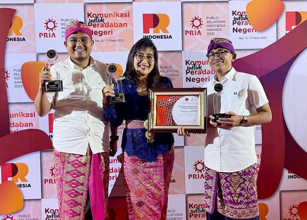 Pada kesempatan yang berbahagia tersebut, PT Federal International Finance meraih penghargaan pada empat kategori yang dipertandingkan pada PRIA 2023, yaitu Bronze Winner pada kategori Manajemen Krisis – Krisis & Pasca Krisis, Gold Winner pada Program PR – Corporate PR – Media Literacy “DEBT COLLECTOR”, Silver Winner pada Program PR – Corporate PR – PDKT (Pahami, Dekati, Kenali, Temani) dengan Media, dan Terpopuler – Media Massa.