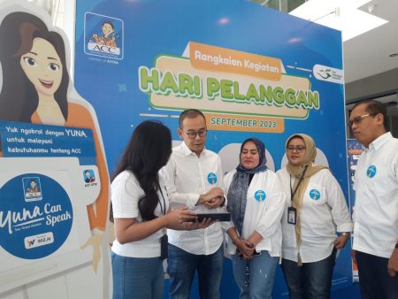 Sesuai tema Hari Pelanggan Nasional 2023 “Melayani Pelanggan di Era AI”, ACC ingin memberikan kesempatan secara langsung kepada pelanggan yang berkunjung ke kantor ACC TB Simatupang untuk mencoba fitur baru dari Yuna. Yuna merupakan asisten virtual dari ACC yang memiliki fitur baru yaitu “Yuna Can Speak”. Jika biasanya pelanggan harus menghubungi Kontak ACC di 1500599 dengan rate premium, maka sekarang pelanggan cukup menghubungi Yuna Can Speak melalui acc one di www.acc.co.id secara gratis kapan saja dan dimana saja. Fitur baru ini diharapkan akan mempermudah pelanggan yang ingin memperoleh informasi seputar produk dan layanan ACC secara virtual.