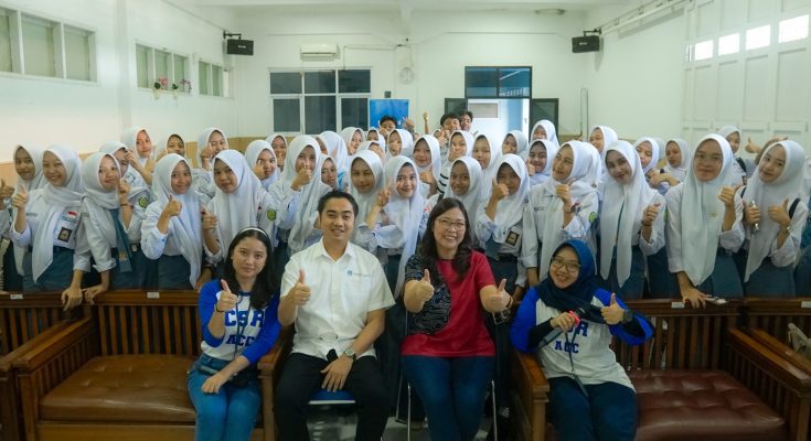 Chief Human Capital Officer ACC Matilda Esther ikut mengajarkan langsung para siswa SMK 4 Padalarang dengan didampingi oleh Corporate Strategic, Communication & ESR Division Head Riadi Prasodjo.