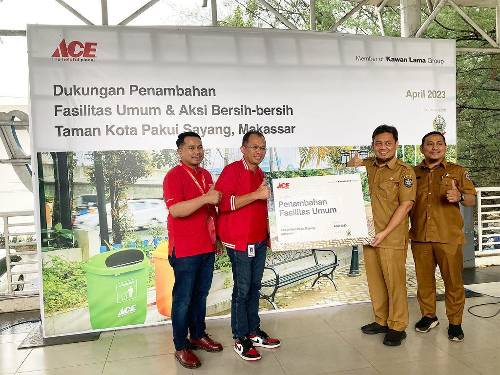 Penambahan fasilitas umum Taman Kota Pakui Sayang Makassar yang diberikan antara lain kursi taman, tempat sampah pilah, lampu hias, dan papan edukasi terkait ajakan untuk mengurangi produksi sampah plastik. Acara serah terima diwarnai dengan aksi bersih-bersih Taman Kota yang melibatkan melibatkan 50 karyawan ACE. Kegiatan ini kemudian dilanjutkan dengan silaturahmi dan buka puasa bersama.