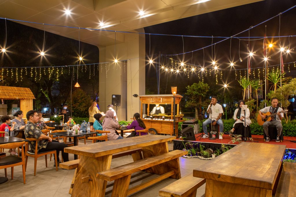 beritaKUH- Atria Hotel Magelang yang berada di Kota Magelang menggelar Angkringan Atria sebagai destinasi kuliner nyaman dan asik di kota ini. Setiap hari Rabu Angkringan Atria hadir dengan konsep santai nan asik dengan alunan live music, free wifi, harga terjangkau dan pilihan menu angkringan lezat yang disiapkan oleh Chef Rian. Stall Bakmi Mbok Mur menjadi pilihan favorit pada angkringan ini, tamu dapat memesan olahan bakmi favorit yang diracik bumbu terbaik dan dimasak langsung oleh Mbok Mur. Menu angkringan lain turut melengkapi diantaranya yakni aneka nasi angkringan, bakso, aneka bubur jenang, aneka gorengan, baceman, sate-satean, wedang ronde & wedang roti, aneka minuman tradisional hangat, buffet sayur lodeh disajikan dengan orek tempe, mangut lele, dan rica ayam Magelang. Menu bervariasi di setiap minggunya hanya dibanderol Rp. 72.000 net semua hidangan dapat dinikmati setiap hari Rabu mulai jam 18:00 – 21:00 WIB di teras lobi hotel ini.