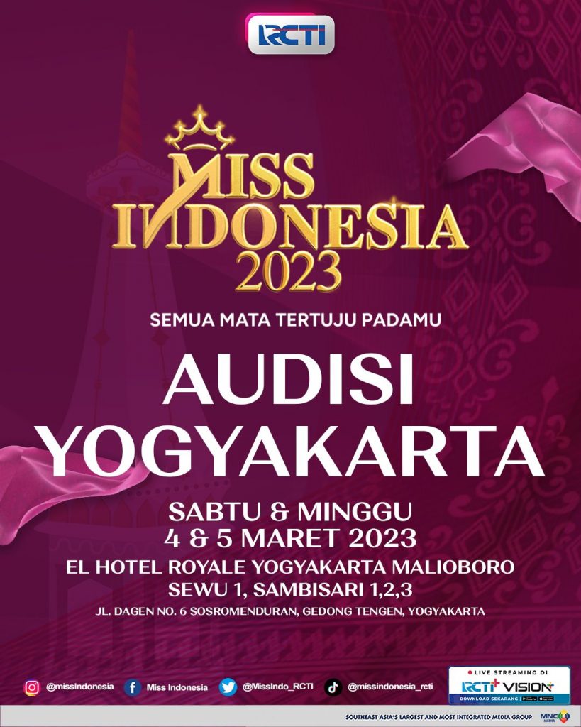 Bagi kamu yang ingin mengikuti audisi Miss Indonesia 2023, untuk mengetahui info lebih lengkap bisa mengunjungi sosial media Miss Indonesia, di Instagram @missindonesia dan TikTok @missindonesia_rcti.
