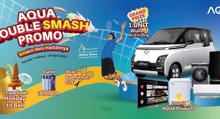 beritaKUH- Awal tahun menjadi salah satu momentum pilihan bagi masyarakat untuk berbelanja. Selain untuk mulai mewujudkan resolusi, berbagai program promosi dengan benefit tambahan juga terasa sayang jika dilewatkan. Menyambut awal tahun ini, brand elektronik terkemuka AQUA Elektronik Indonesia, turut menghadirkan program spesial AQUA Double SMASH Promo bagi para pelanggan setia. Berlangsung mulai 5 Januari hingga 30 April 2023, pelanggan AQUA berkesempatan untuk mendapatkan hadiah langsung/direct gift dan undian berhadiah/lucky draw yang diundi setiap bulan.