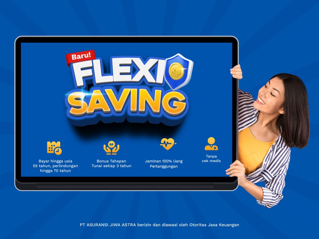 hingga nasabah mencapai usia 55 tahun dengan perlindungan hingga nasabah berusia 70 tahun. Flexi Saving ditawarkan dengan pilihan premi yang dapat disesuaikan dengan kemampuan finansial nasabah, mulai dari Rp100 ribu per bulan, serta tanpa perlu melakukan cek medis. Frekuensi Pembayaran Premi tersedia dalam