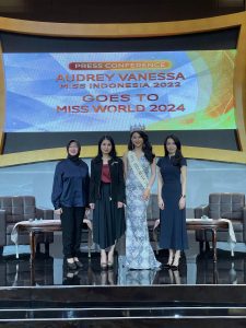 beritaKUH- Audrey Vanessa Miss Indonesia 2022 akan berlaga diajang Internasional Miss World 2024 di India, pada tanggal 18 Februari hingga 9 Maret 2024. Audrey berhak menyandang Miss Indonesia 2022 yang digelar 15 September 2022.