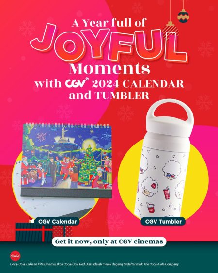 –Ide kado dan hampers lucu untuk Natal dan Tahun Baru Para millennial yang hobi koleksi merchandise lucu atau ingin bertukar hampers, ada Tumbler dan Kalender spesial di CGV. Tumbler dengan ukuran yang pas, dengan desain yang menggemaskan dan anti bocor yang bisa dibanderol dengan harga Rp150.000 gratis Combo Solo (1 medium popcorn + 1 minuman), sementara Kalender 2024 berkolaborasi dengan dua ilustrator muda bertalenta @aufaag dan @mireuharu bisa dibanderol hanya dengan menambahkan Rp38.000 setiap pembelian menu Combo Solo (1 medium popcorn + 1 minuman). Mulai 22 Desember 2023 bisa menikmati varian popcorn baru yaitu Basil Onion Popcorn yang gurih dan nikmat di CGV!