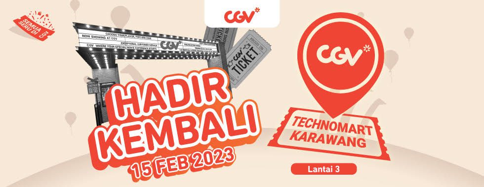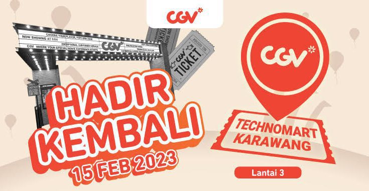 beritaKUH- Setelah tutup untuk perbaikan pada akhir tahun 2022 lalu, CGV Cinemas Indonesia membuka kembali salah satu bioskopnya di daerah Karawang, Jawa Barat tepatnya di Tenchomart Karawang Lt. 3 Jl. Galuh MAS Raya, Sukaharja, Telukjambe Timur, Kabupaten Karawang.