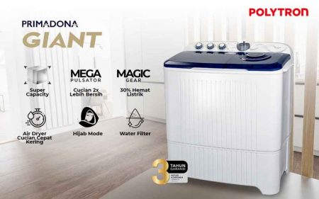 beritaKUH- Mengerjakan pekerjaan rumah tangga sehari-hari seperti mencuci pakaian merupakan kebutuhan setiap keluarga. Maka dari itu betapa pentingnya peralatan rumah tangga yang andal dan praktis, POLYTRON mempersembahkan mesin cuci Primadona Giant, menggabungkan kapasitas besar dengan keandalan yang tak tertandingi.