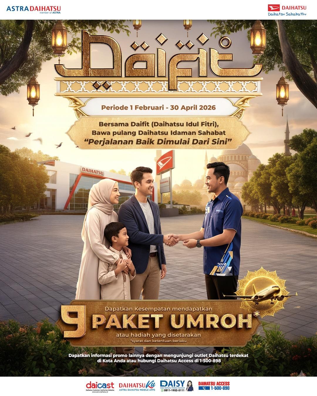 beritaKUH- Astra Daihatsu kembali menghadirkan program DAIFIT yang berlaku untuk pembelian kendaraan Daihatsu selama periode 1 Februari – 30 April 2026.