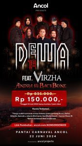 Yang ingin menikmati liburan di seluruh wahana Ancol di pagi dan siang hari kemudian menonton penampilan Dewa pada malam harinya, dapat langsung membeli tiketnya di www.ancol.com (kuota tiket terbatas).