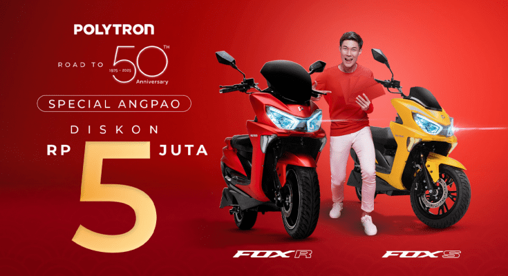 beritaKUH- Program promo spesial imlek dan menjelang ulang tahun ke-50, Polytron menghadirkan potongan harga senilai Rp5.000.000 untuk setiap pembelian motor listrik.