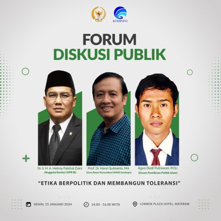 beritaKUH- Politik harus punya etika berpolitik dan pembangunan toleransi. Dan harus menjaga stabilitas dan inklusivitas dalam masyarakat. Budaya politik membentuk dasar demokrasi yang berfungsi dengan baik. Hal ini dituangkan pada diskusi publik mengenai Etika Berpolitik dan Pembangunan Toleransi pada hari Senin (15/01) di Lombok.