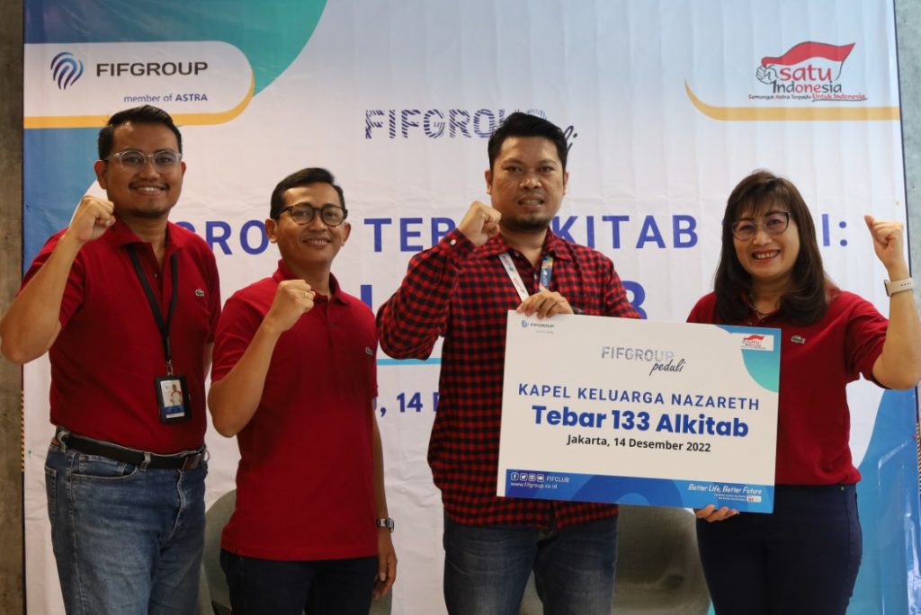 beritaKUH- Dalam rangka menyambut Hari Natal 2022, PT Federal International Finance (FIFGROUP) yang merupakan salah satu anak perusahaan PT Astra International Tbk dan bagian dari Astra Financial, berkomitmen untuk terus hadir bagi masyarakat dengan menggelar kegiatan pembagian 798 buah Alkitab bagi 6 gereja di 6 titik lokasi cabang FIFGROUP .