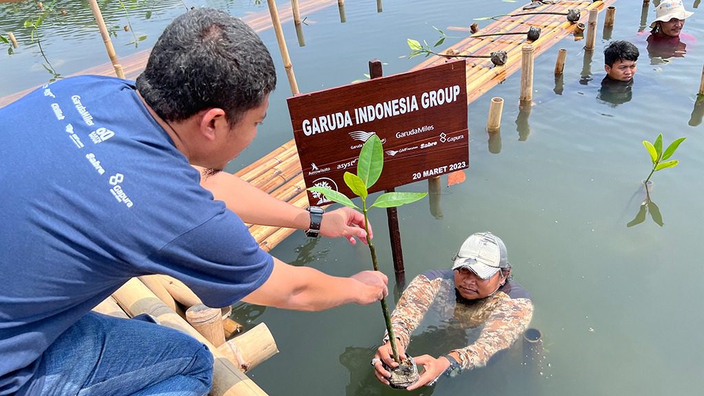 Pada tahap awal, melalui program Tanggung Jawab Sosial Lingkungan, Garuda Indonesia beserta dukungan anak usahanya menjalin kolaborasi program Mangrove Planting bersama Jejakin yang dilaksanakan di kawasan Taman Wisata Pantai Indah Kapuk, Jakarta, Senin (20/3). Adapun program Mangrove Planting ini diawali dengan penanaman 3.000 bibit yang akan dilaksanakan sepanjang tahun 2023. Secara keseluruhan, jumlah bibit pohon mangrove yang akan ditanam di tahun 2023 tersebut setara dengan pengurangan karbon sebesar 286,800 kgCO2e. Kontribusi ini dapat memulihkan ekosistem hutan mangrove di Jakarta, dengan mengurangi bencana intrusi air laut, banjir rob, serta meminimalisisr kerusakan habitat di sekitarnya. Bibit pohon mangrove tersebut juga berasal dari konversi redemption GarudaMiles pada program “Ayo Jaga Bumi Kita Bersama”. Melalui program ini, para anggota GarudaMiles dapat menukarkan setiap 1.500 poin mileage-nya untuk satu pohon mangrove.