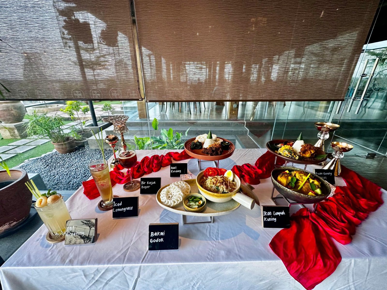 Terdapat 4 hidangan khas Indonesia antara lain: Ikan Lempah Kuning Rp 85,000, Nasi Rendang Rp 109,000, Ayam Kalasan Rp. 89,000 dan Bakmi Godog Rp 69,000 Serta 3 macam minuman tradisional Bir Kotjok Bogor Rp. 35,00, SBI Greeting Rp. 45,000 dan Iced Lemongrass Rp. 35,000.