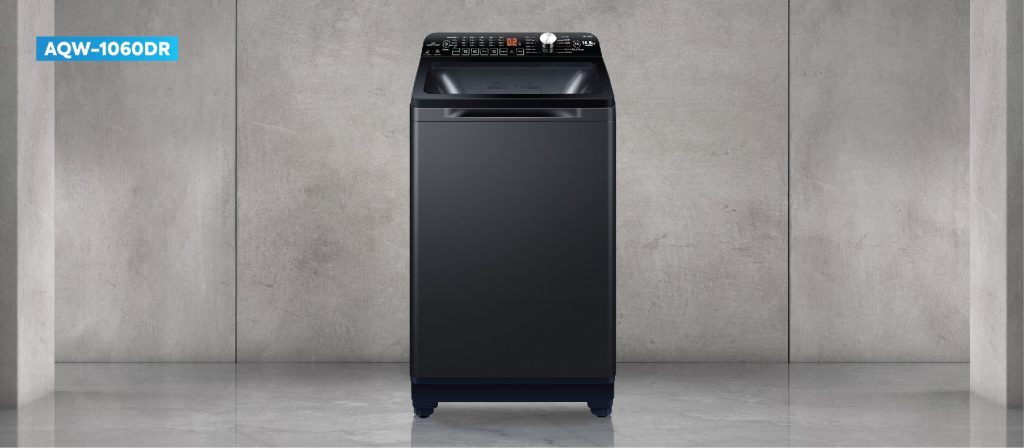 Bagi yang ingin mencari jenis bukaan atas (top loading) AQUA Japan juga menghadirkan model AQW – 1060DR. Mesin cuci ini dilengkapi teknologi Rear Control dimana panel kontrol didesain mempertimbangkan kenyamanan dan kemudahan pengguna dalam melakukan pencucian. Desain ergonomis ini membuat Anda aman dan tidak perlu khawatir dari cipratan air dan sengatan listrik. Selain itu ada teknologi Direct Motion Motor, yang menghasilkan suara lebih halus, meningkatkan daya tahan sekaligus mengurangi konsumsi energi.