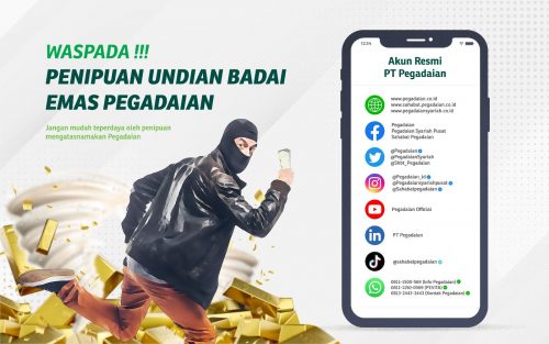 beritaKUH- Hati-Hati Penipuan Atasnamakan Undian Badai Emas Pegadaian. Masyarakat agar cermat dan waspada terhadap dugaan modus penipuan yang tersebar melalui media sosial. Pegadaian tidak memiliki program Undian Badai Emas maupun program undian lainnya. Untuk mengantisipasi adanya korban tindak penipuan, maka Pegadaian meminta masyarakat agar tidak mudah percaya dengan hadiah undian, apalagi sampai mentransfer uang secara gegabah.