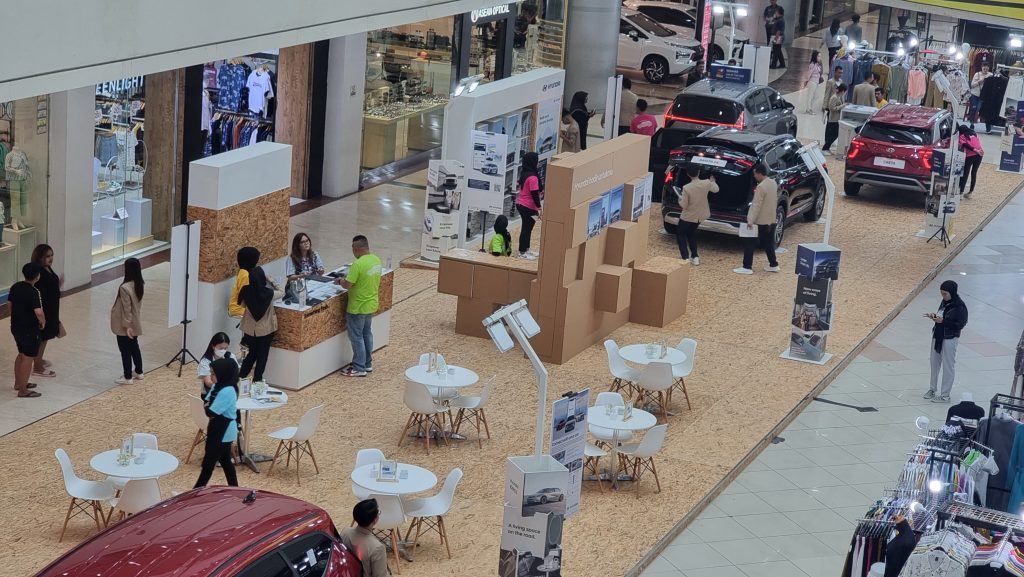 Pameran Hyundai kali ini turut menghadirkan Hyundai Sustainable Space ke kota-kota di Indonesia, yang sebelumnya telah diperkenalkan pada ajang Indonesia International Motor Show (IIMS) 2023 dan Jakarta Auto Week (JAW) 2023 lalu. Mengusung visi global ‘Progress for Humanity’ sebagai dasar dari inovasi yang dilakukan untuk Indonesia demi masa depan berkelanjutan, Hyundai Motors Indonesia “menghidupkan kembali” sisa bahan dari pabrik untuk menciptakan ruang pameran yang unik memanfaatkan bahan reusable seperti kardus bekas dan waferboard langsung dari pabrik Hyundai yang berlokasi di Cikarang, Jawa Barat.