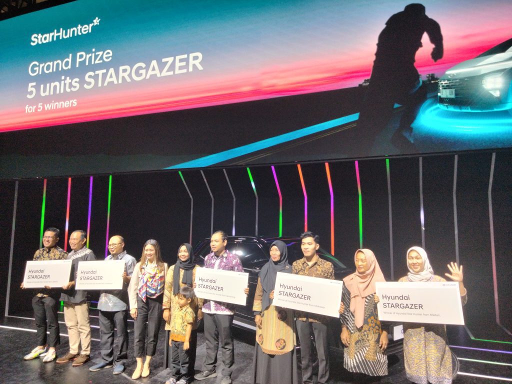 beritaKUH- PT Hyundai Motors Indonesia (HMID) pada ajang Indonesia International Motor Show (IIMS) 2023, dilakukan serah terima grand prize 5 unit Hyundai STARGAZER kepada lima orang pemenang utama program Hyundai StarHunter. Kompetisi seru untuk berburu STARGAZER sambil membuat konten foto dan video menarik tentang sang bintang baru keluarga ini, sukses mengumpulkan lebih dari 8.100 kreasi konten selama penyelenggaraan di lima kota besar (Jakarta, Semarang, Surabaya, Medan dan Makassar) pada November 2022 hingga akhir Januari 2023. Adapun pengundian resminya digelar secara terbuka di hadapan notaris pada 6 Februari lalu, bertempat di Hyundai STARGAZER Studio, SCBD Lot 19, Jakarta.