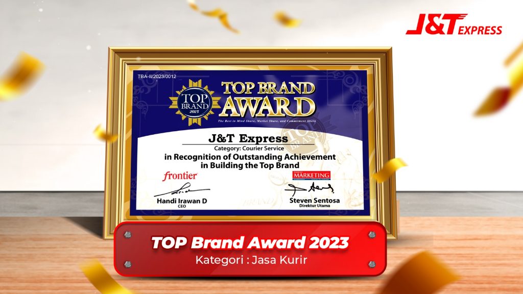 beritaKUH- J&T Express raih penghargaan Top Brand Award 2023 untuk kategori Jasa Kurir. Sebagai perusahaan berskala global yang telah hadir di 13 negara yang tersebar di Asia Tenggara, China, UEA, dan Amerika Latin, pada tahun ini berhasil menduduki peringkat teratas dalam perolehan Top Brand Indeks sebesar 33,3%, dimana terdapat kenaikan signifikan dibandingkan tahun sebelumnya dengan persentase 23,1%. Raihan ini menandakan J&T Express menjadi Top of Mind di Indonesia.