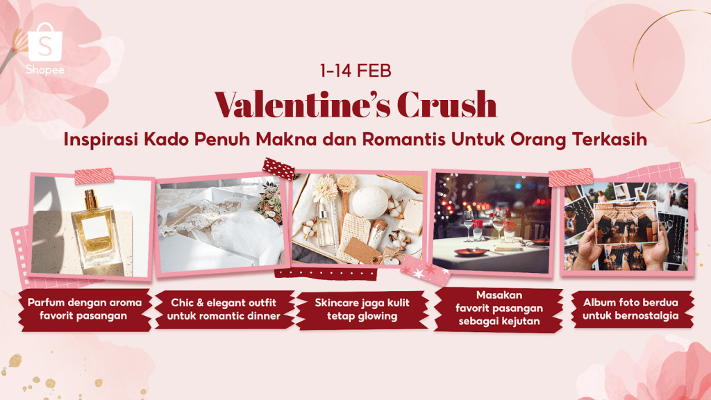 beritaKUH- Bulan Februari identik dengan Hari Valentine atau sering disebut dengan hari kasih sayang yang jatuh di tanggal 14 Februari. Perayaannya identik dengan kejutan romantis dan hadiah terbaik yang seringkali disiapkan untuk sang kekasih hati. Namun, dalam mengungkapkan rasa cinta dan kasih sayang, tentunya hadiah yang disiapkan tidak melulu harus berupa barang mewah nan mahal, melainkan bisa dengan barang sederhana yang penuh makna dan bakal melekat di hati pasangan. Kini, Shopee menghadirkan kampanye Valentine’s Crush yang berlangsung sejak 1 Februari hingga 14 Februari. Berbagai penawaran menarik seperti Flash Voucher up to 125RB dan Free Instant Shipping bisa dinikmati pengguna untuk membeli hadiah spesial bagi orang terkasih di hari spesial.