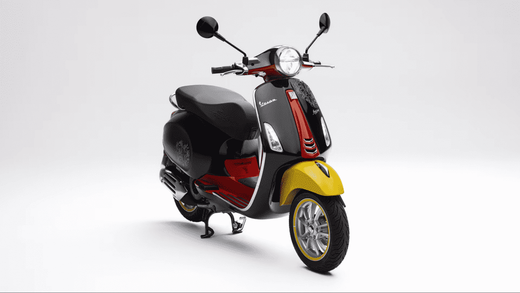 Dalam kolaborasi ini, Vespa Primavera 150cc hadir dalam balutan warna hitam, merah, putih, dan kuning, yang merepresentasikan sosok tikus legendaris kebanggaan Walt Disney tersebut. Roda dengan warna kuning menggambarkan sepatu Mickey Mouse, sementara cermin hitam menggambarkan telinga Mickey yang bulat menggemaskan. Pola siluet sang karakter menghiasi kedua sisi dan bagian depan kendaraan. Terakhir, tanda tangan Mickey Mouse di jok dan kerangka depan siap menarik perhatian.