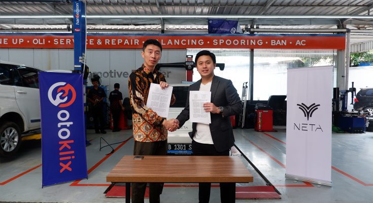 PT NETA Auto Indonesia diwakili oleh Zhu Wenbin selaku Managing Director, sementara pihak Otoklix diwakili oleh Martin Reyhan Suryohusodo, President Director Otoklix.