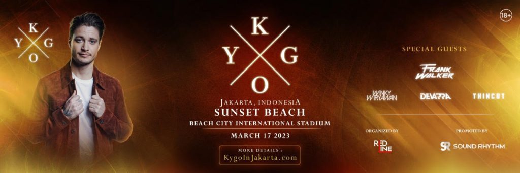beritaKUH- Red Line Kreasindo dan Sound Rhythm hari ini resmi mengumumkan akan mendatangkan mega bintang, produser musik dan DJ “KYGO” yang akan tampil mengguncang Jakarta Indonesia di Sunset Beach – Beach City International Stadium (Ancol, Jakarta) pada hari Jumat, 17 Maret 2023. Penampilan Kygo di Jakarta akan turut menghadirkan Special Guests: Frank Walker, Winky Wiryawan, Devarra dan Thincut. Acara ini khusus untuk 18 tahun ke atas.