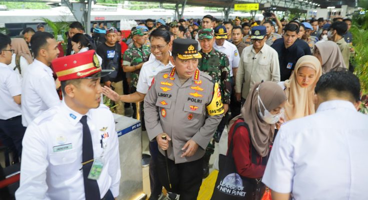 beritaKUH- Menteri Perhubungan Republik Indonesia (Menhub RI) Budi Karya Sumadi, Kepala Kepolisian Negara Republik Indonesia (Kapolri) Jendral Polisi Listyo Sigit Prabowo, Panglima TNI Jenderal TNI Agus Subiyanto melakukan kunjungan pantau langsung pelayanan mudik di Stasiun Pasar Senen, Sabtu (6/4).