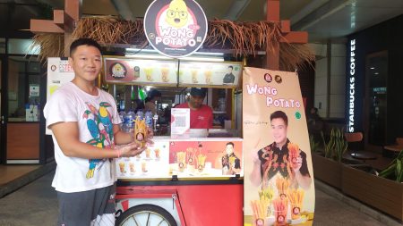 Salah satu pemilik kuliner kekinian “Wong Potato”, Decky mengatakan bahwa ini pertama kalinya mengikuti ini di Pasaraya. Yang dihidangkan Wong Potato ini adalah stik kentang yang berisi 19 dengan bermacam varian rasa. Yang lebih unik lagi adalah cara memasaknya dengan alat khusus dan keahlian. Rasanya benar-benar enak. Kuliner kekinian ini dibandrol 20rb-an, selain itu juga dijual segala macam varian es teh.