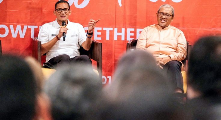 “Kita ingin UMKM ini tidak jalan di tempat jadi harus naik kelas ke level korporasi,” kata Menparekraf Sandiaga dalam Seminar Genpro (Global Entrepreneurs Profesional) “Dari UKM Menuju Korporasi” di Zest Hotel Bandung, Sabtu (21/1/2023).