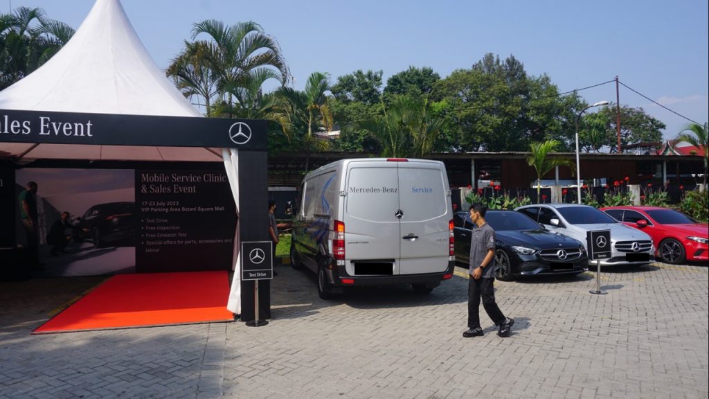Mercedes-Benz Mobile Service Clinic and Sales Event hadir di Ground Floor dan VIP Parking Area Botani Square Mall, Jl. Padjajaran Kota Bogor, dari tanggal 17 hingga 23 Juli, mulai pukul 10:00 WIB – 22:00 WIB layanan penjualan, 10:00 WIB – 18:00 WIB untuk layanan servis, dan 10:00 WIB – 20:00 WIB untuk layanan test drive.