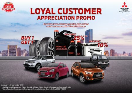 “Di Mitsubishi Motors, kami sangat menghargai pelanggan kami dan ingin mengekspresikan rasa terima kasih kepada mereka yang setia dengan merek kami. Dan dalam rangka menjaga loyalitas pengguna Mitsubishi Motors di Indonesia, kami meluncurkan kampanye “Loyal Customer” untuk memberikan layanan terbaik bagi mereka. Seluruh pelanggan kendaraan Mitsubishi Motors dapat menikmati berbagai manfaat, termasuk diskon hingga 25% untuk suku cadang (Oli mesin dan Filter Oli) dan penawaran istimewa untuk komponen seperti aki dan ban.” ujar Eiichiro Hamazaki, Director of After Sales Division PT MMKSI.
