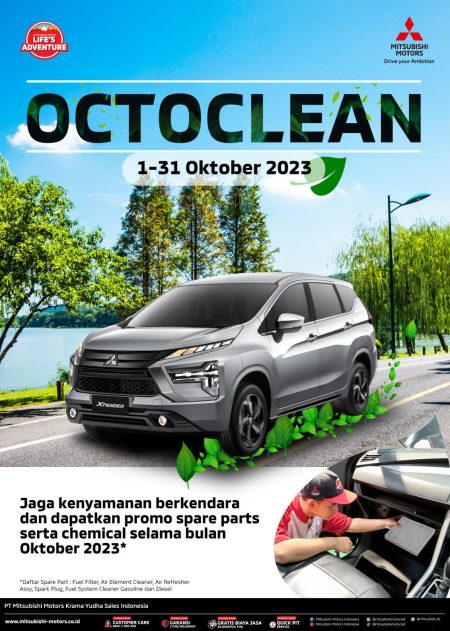 beritaKUH- PT Mitsubishi Motors Krama Yudha Sales Indonesia (MMKSI), Hadirkan Program OCTOCLEAN Sambut Bulan Oktober memudahkan komsumen dalam menjaga kenyamanan berkendara dan menjaga peforma kendaraannya secara optimal dengan penawaran diskon suku cadang dan chemical yang berlangsung pada 1-31 Oktober 2023.