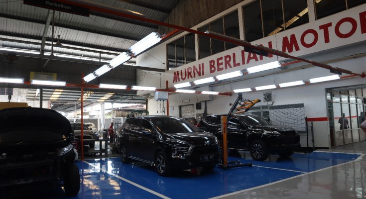 Mitsubishi Bodi & Cat – Murni Berlian Motor memliki total 14 stall yang dapat mendukung proses rekondisi kendaraan dengan kapasitas hingga 132 unit kendaraan.