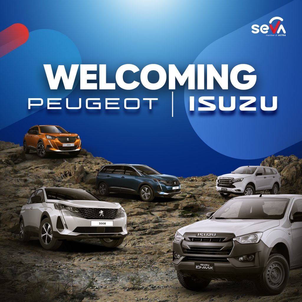 Financial, akan semakin lengkap dengan bertambahnya 2 brand mobil ASTRA yang bergabung di SEVA per-Oktober 2022 ini, yaitu Isuzu dan Peugeot. Hal tersebut tentu akan melengkapi brand mobil sebelumnya yang sudah terlebih dahulu hadir yaitu Toyota, Daihatsu, dan BMW.