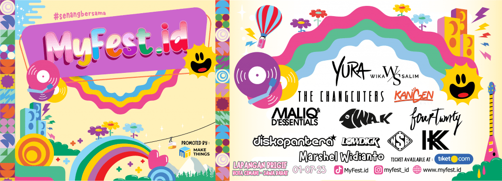 beritaKUH- Pihak Penyelenggara Make Things hari ini resmi mengumumkan akan menyelenggarakan festival musik satu hari dengan tajuk MyFest.id yang akan diselanggarakan pada hari Sabtu, 1 Juli 2023 di Lapangan Brigif 15 Kujang Cimahi – Bandung acara akan dimulai pukul 13.00 – 23.30 WIB dan Open Gate mulai pukul 10.00 WIB.