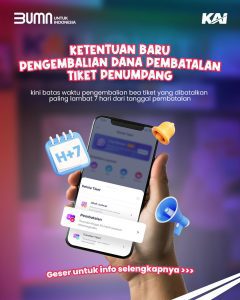 beritaKUH- PT Kereta Api Indonesia (Persero) Daop 1 Jakarta mulai 1 Juni 2024 menetapkan kebijakan baru mengenai waktu pengembalian dana pembatalan tiket KA Antar Kota.