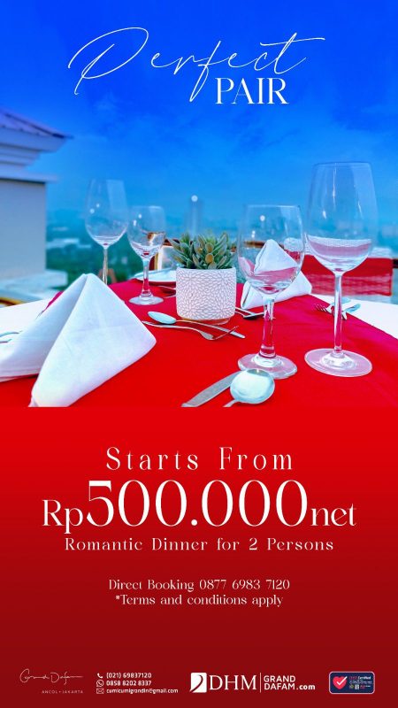 “Kami ingin memberikan fleksibilitas bagi para tamu yang memilih Perfect Pair. Para tamu dapat menikmati suasana romantis di 33 Sky Bridge dengan budget yang fleksibel.” Ucap Achmad Ridwan Deskana selaku General Manager Grand Dafam Ancol Jakarta.
