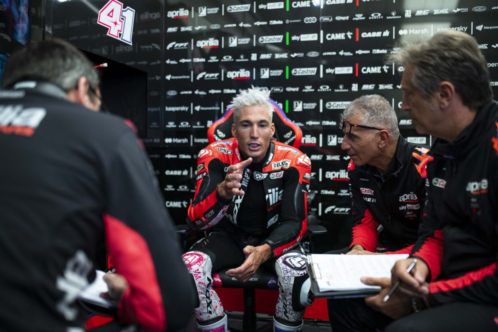 Kedua sesi pertama setelah rehat panjang musim panas MotoGP menempatkan pembalap Aprilia secara konsisten di antara yang terbaik. Di Silverstone, Maverick mengambil waktu terbaik ketiga pada kedudukan keseluruhan, dimana Aleix berada di posisi ketiga, hanya 30 perseribu di belakang partner timnya. Jarak ini menjadi representasi akurat akan situasi di trek, ditandai dengan kedudukan yang tipis, dengan 16 pembalap seluruhnya berbeda kurang dari 1 detik dari yang lain.