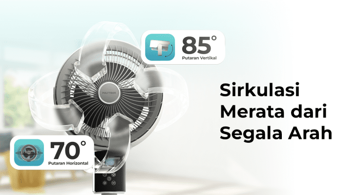 Dilengkapi teknologi sirkulasi udara 3D, Polytron Air Circulation Fan mampu menyebarkan udara ke seluruh sudut ruangan.