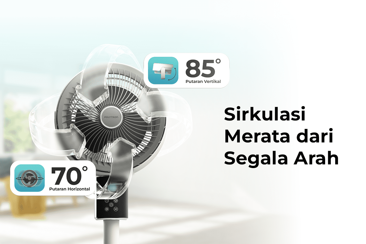 Sebagai pelengkap sistem pendinginan di rumah, Polytron Air Circulation Fan juga dirancang untuk bekerja selaras dengan penggunaan AC.