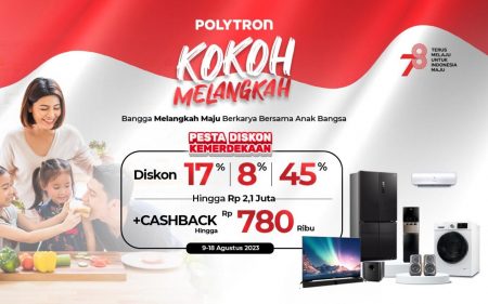 beritaKUH- POLYTRON Hadirkan Promo Sambut Kemerdekaan, momen yang berbahagia ini dengan promo produk elektronik terbaru hingga mencapai Rp2.1 jutaan sehingga siapa pun punya kesempatan untuk memilikinya dengan harga yang ‘miring’. HUT RI ke-78 ‘Terus Melaju Untuk Indonesia Maju’, bersamaan, POLYTRON juga akan merayakan 48 tahun eksistensinya. Selaras dengan tema HUT RI, POLYTRON di bulan Agustus ini juga mengampanyekan programnya dengan tema ‘Kokoh Dalam Setiap Langkah, POLYTRON Bersama Memajukan Indonesia’. Tema ini mendeskripsikan POLYTRON selalu berkomitmen untuk turut serta dalam membangun negeri ini dengan produk-produk unggulan dan inovatif yang sangat mendukung gaya hidup modern masyarakat Indonesia.