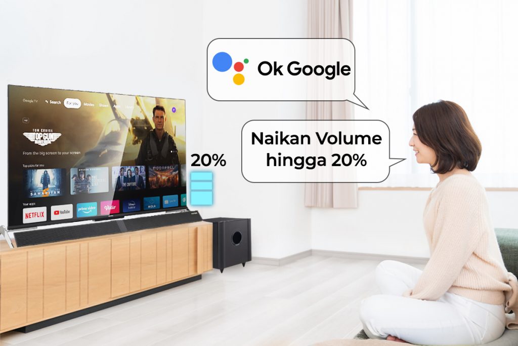 mengontrol perangkat smart home lainnya yang telah terhubung dengan smart TV. Smart Cinemax Soundbar seri Google TV ini tersedia dalam ukuran 43, 50, dan 55 inci dengan garansi selama 5 tahun termasuk panel LED.”