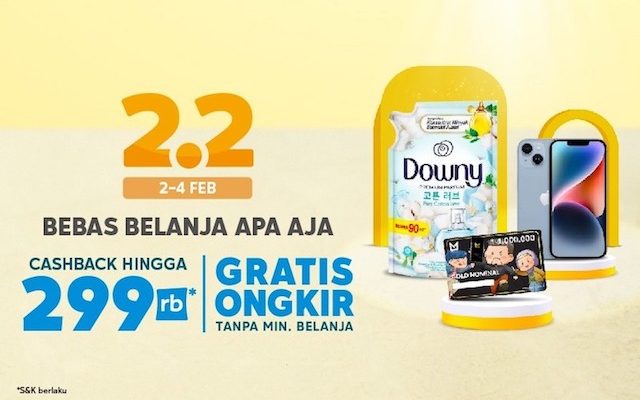 Sebagai program double day pembuka di tahun 2023, Promo Double Day 2.2 menawarkan berbagai produk terkurasi lengkap dengan spesial cashback hingga Rp299 ribu dan gratis ongkir tanpa minimum belanja.