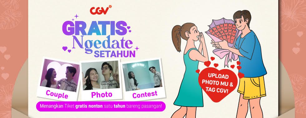 - GRATIS Ngedate 1 tahun untuk Teman Seru yang mengabadikan momen bareng pasangan di lokasi CGV seluruh Indonesia dan mengunggahnya di sosial media. Berikut syarat & ketentuannya: