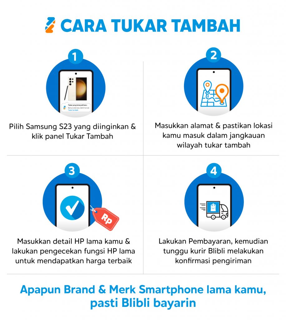 “Blibli sebagai Samsung Official Retail Seller turut menggelar promo menyambut kehadiran Samsung Galaxy S23 dengan menghadirkan yang serta pasti lewat jaminan 100% produk orisinil, pengiriman cepat 2 Jam Sampai, serta menyediakan layanan Tukar Tambah untuk harga terbaik dengan proses yang praktis. Pelanggan mulai hari ini dapat membeli Samsung Galaxy S23 Series 5G dengan harga lebih terjangkau lewat fitur Tukar Tambah yang tersedia online lewat aplikasi dan website, serta secara offline di 50 gerai toko fisik Blibli Store dan Toko Tukar Tambah yang tersebar di seluruh Indonesia,” ujar Wisnu Iskandar, Executive VP Trade Partnership Gadget & Electronics Blibli