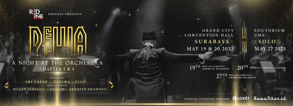 beritaKUH- Setelah sebelumnya sukses di Jakarta, kini RedLine Kreasindo akan membawa kembali pertunjukan DEWA 19 – A NIGHT AT THE ORCHESTRA ke kota selanjutnya yaitu kota Surabaya dengan tajuk DEWA 19 – A NIGHT AT THE ORCHESTRA Chapter 3 yang akan diselenggarakan di Grand City Convention Hall Surabaya pada tanggal 19 dan 20 Mei 2023 dan selanjutnya ke kota Solo dengan tajuk DEWA 19 – A NIGHT AT THE ORCHESTRA Chapter 4 yang akan berlangsung di Edutorium UMS Solo pada tanggal 27 Mei 2023. Pertunjukan istimewa ini merupakan bentuk jawaban terhadap permintaan baladewa dan baladewi di kota Surabaya dan kota Solo yang ingin menyaksikan idola mereka kembali tampil dengan penampilan DEWA 19 dengan format megah Orchestra. Akan ada musisi-musis ternama yang ikut terlibat dalam memeriahkan acara ini seperti Ari Lasso, Virzha, Ello dengan special performance by Mulan Jameela, Andien, Ardhito Pramono.