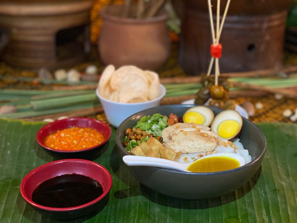 Menu andalan yang sering dijumpai setiap pagi atau malam. Bubur ayam selalu menjadi hidangan yang paling nyaman untuk dimakan. Bubur yang dimasak dengan kaldu ayam, disajikan dengan kuah kuning, dengan topping irisan ayam, cakwe, telur, kacang, daun bawang dan bawang goreng. Ditambah pelengkap seperti sate telur puyuh, ati dan ampela.