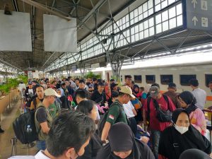 beritaKUH- Jumlah pemudik KA Jarak Jauh (KAJJ) berdasarkan pantauan pada Kamis 11 April 2024 (Hari Raya ke 2), jumlah pelanggan yg telah dan akan berangkat sementara ini ada sebanyak 692.948 orang. Tiket mudik paska lebaran per tanggal 11 April 2024 sebanyak 208.068 atau 18.915 seat perharinya.